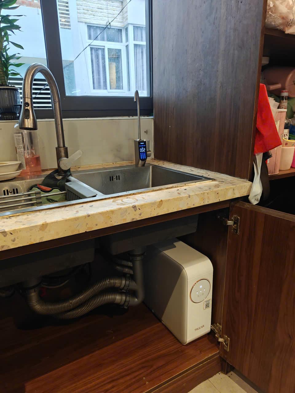 Hình ảnh lắp đặt thực tế máy lọc nước âm tủ bếp Truliva UR5676